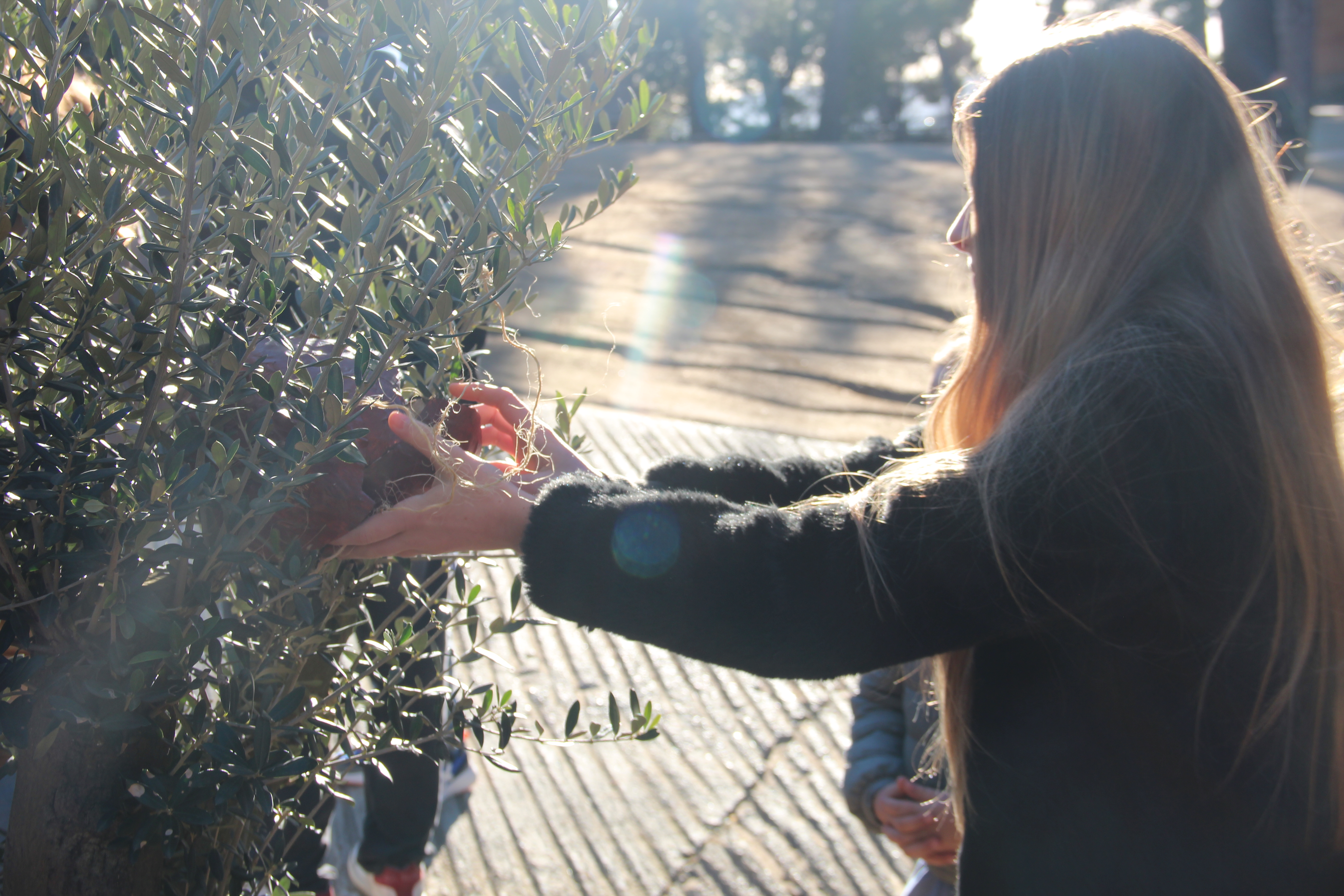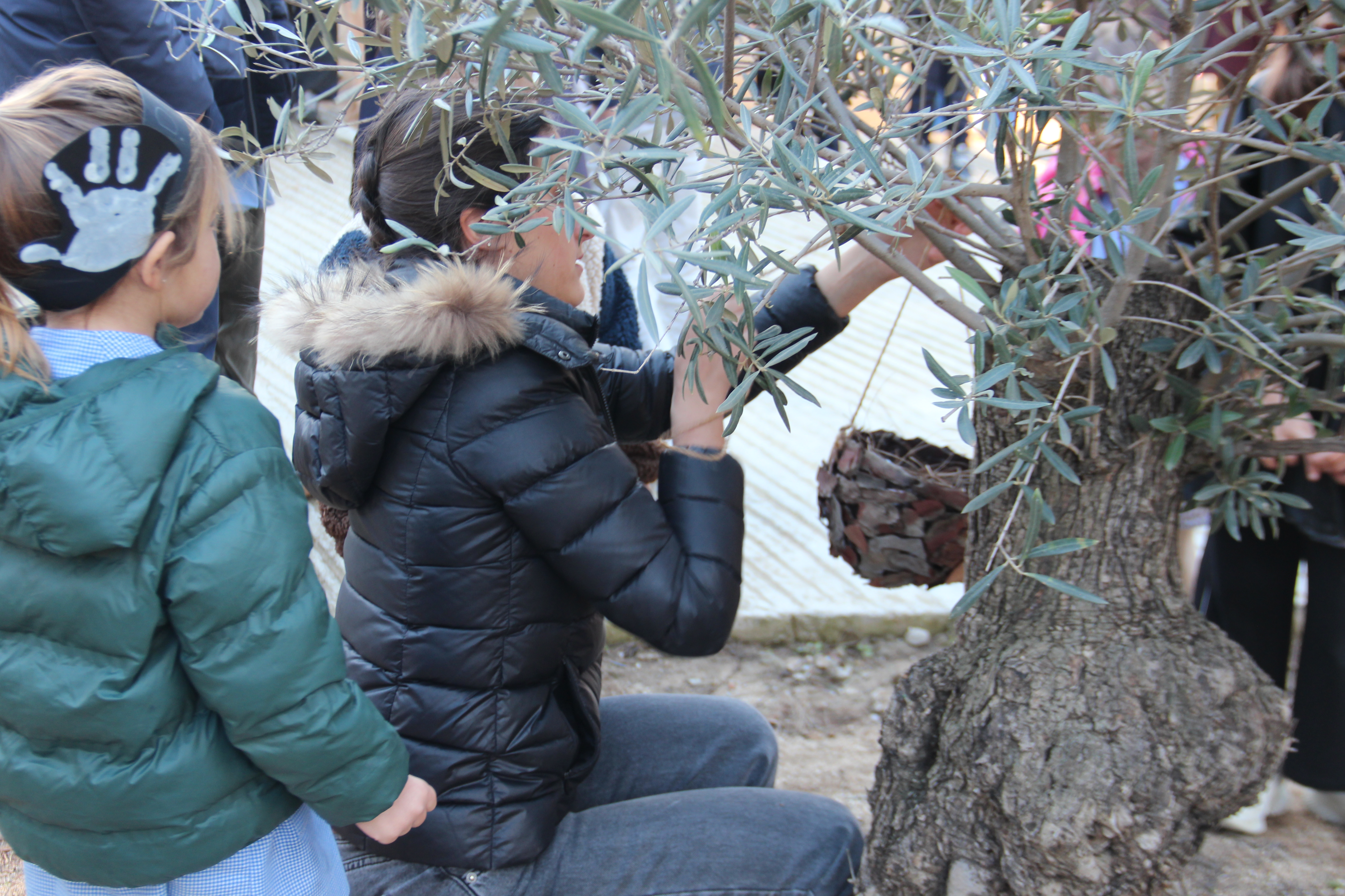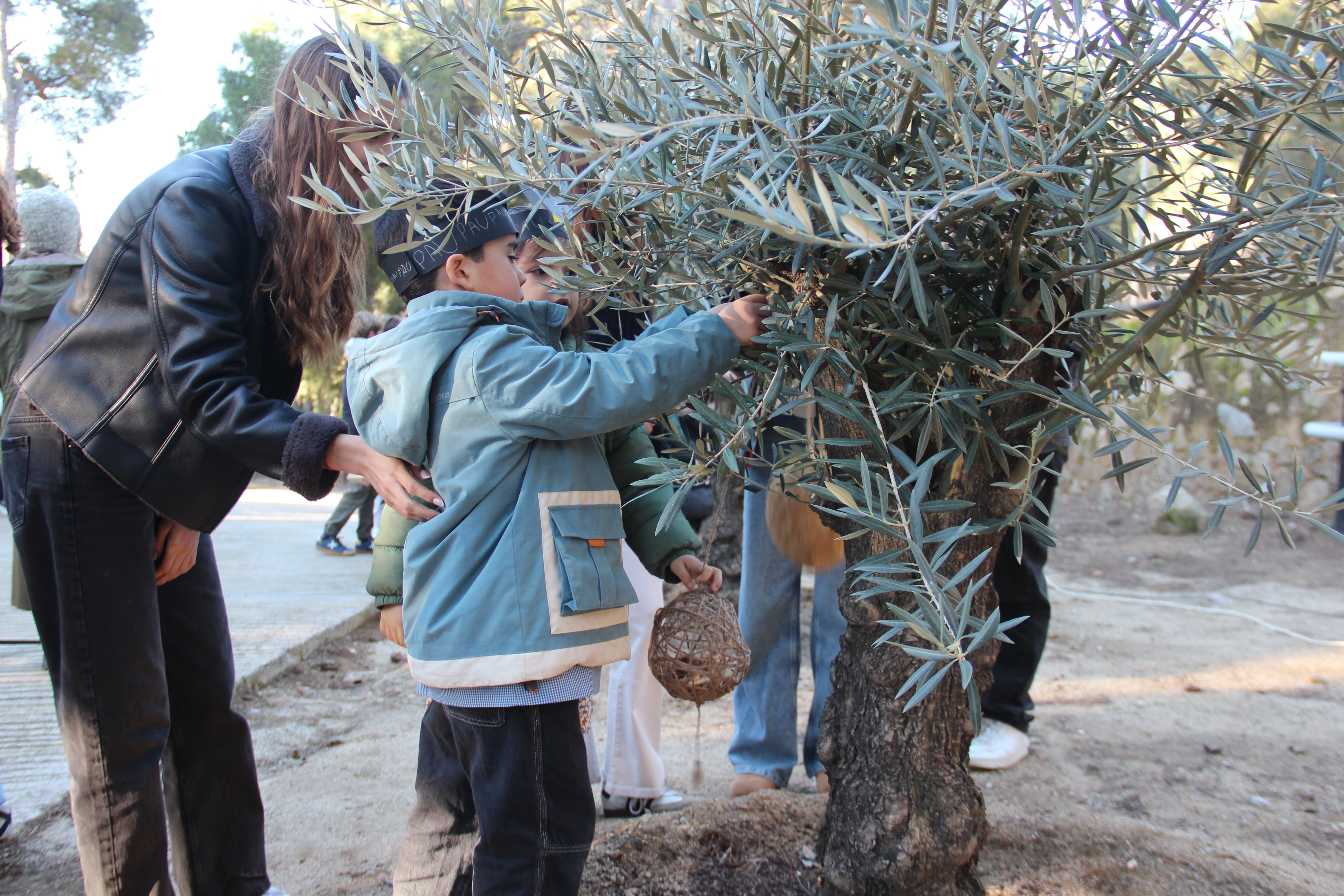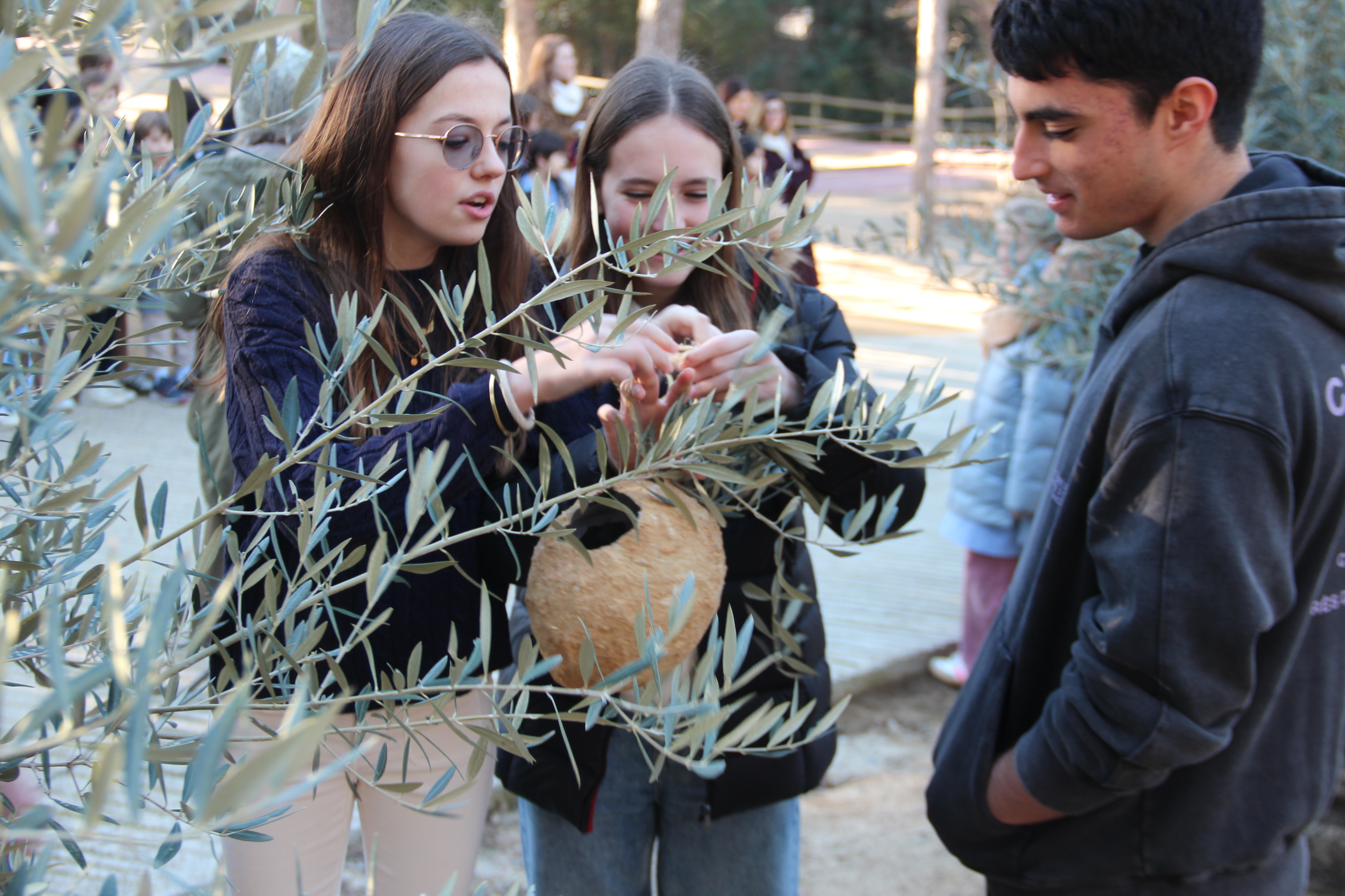 L’Escola ha volgut agrair la seva generositat amb el lliurament de dues cianotípies creades pels alumnes de 2n de Batxillerat artístic Lucas U. i Paula R. L’acte ha finalitzat amb una emotiva performance artística en què alumnat de totes les etapes ha penjat escultures de nius, fetes amb materials naturals, a les oliveres.